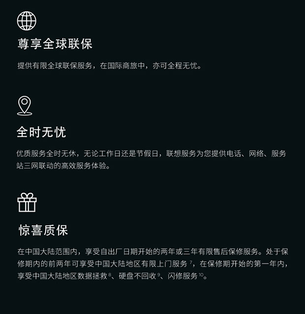 | 保修政策 | 7*24小时人工电话支持 2年有限保修服务(全国有限上门) 1年有限全球联保服务(S/neo除外) 1年数据无忧(含数据拯救,硬盘不回收,闪修) |