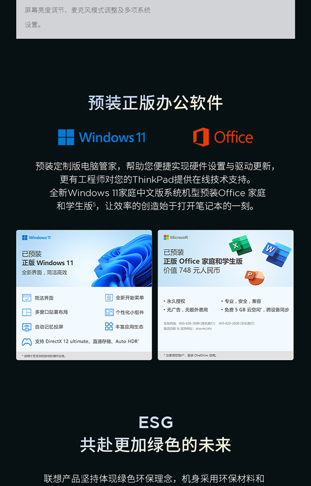 | 附带软件 | Office 家庭学生版 | 服务 |