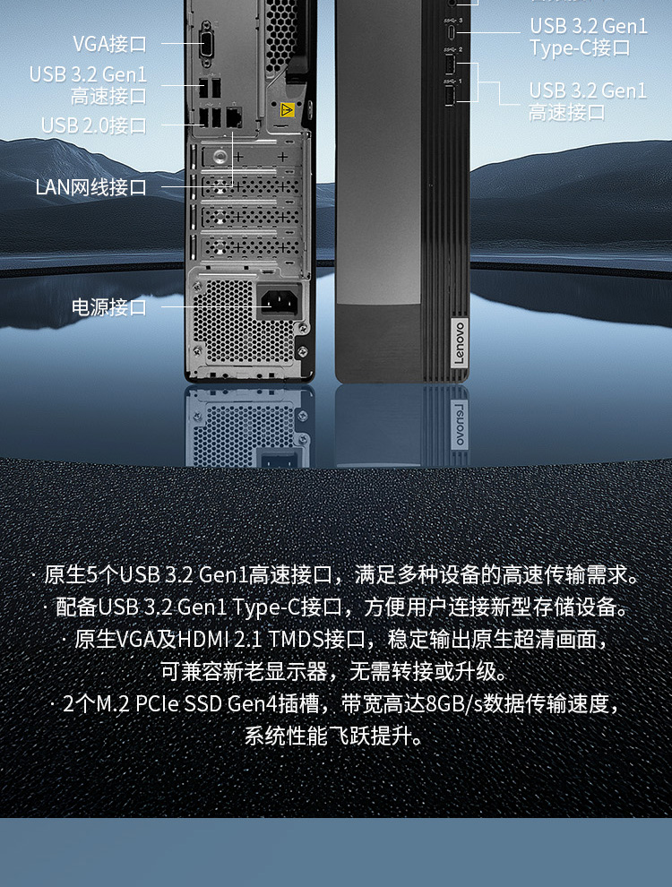 前(侧)面板USB接口 | 2*USB 3.2 Gen1接口+1*Type-C接口 | 后面接口 |