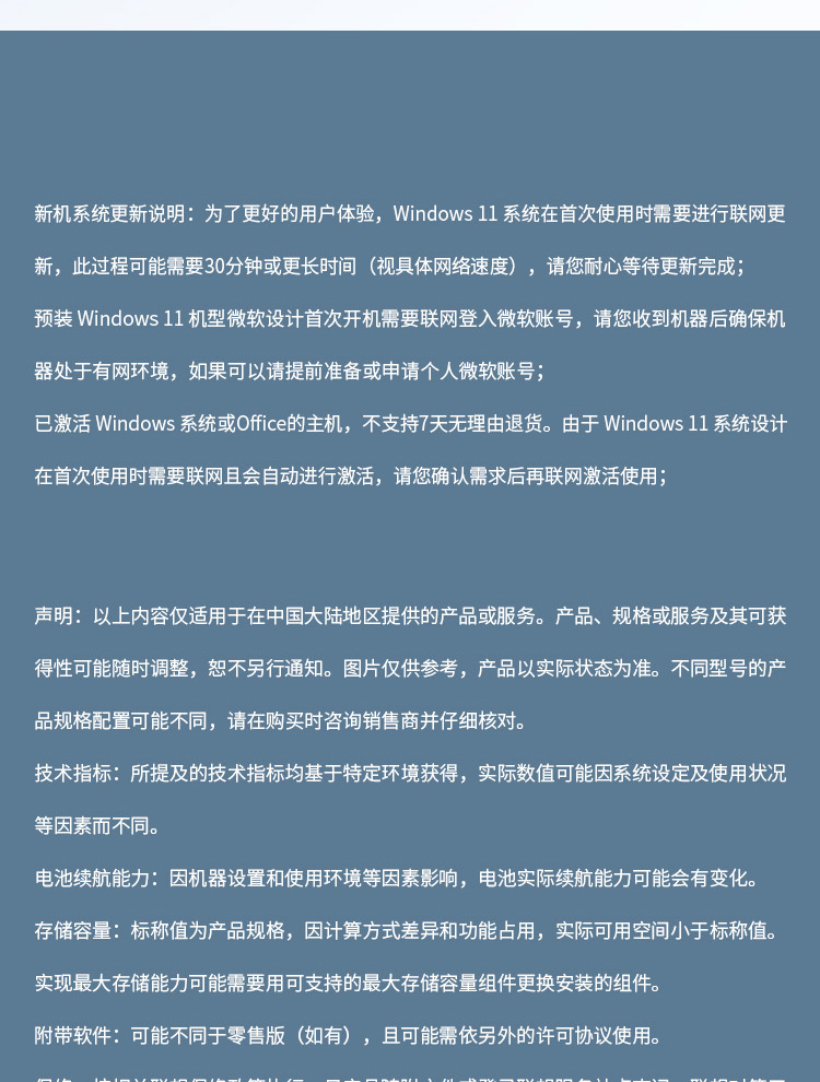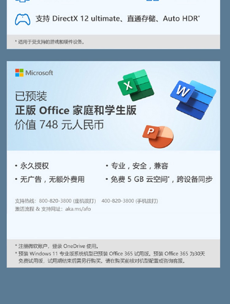 预装软件 | Office 家庭学生版 | 服务 |